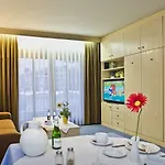Im Hotel Appartmenthaus Thermenhof stehen Ihnen 53 Zimmer zur Auswahl, die mit einem Balkon und einem Essbereich ausgestattet sind. Die Badezimmer verfügen über eine getrennte Toilette und eine Dusche, einen Haartrockner und Badelaken.